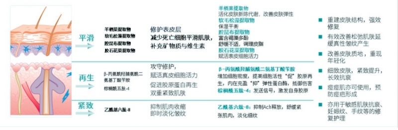 自我评估:在受试者使用28天后的自我评估报告中,受试者的使用感受为温和、无刺激、易吸收和肤感好,此外在功效上,受试者有可感知性的紧致、抗皱、平滑的抗衰老效果。